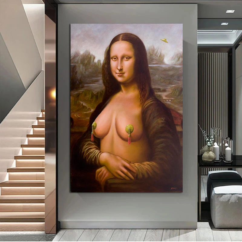 Sexy Mona Lisa Nude In Hemd Leinwand Gemalde Nackt Frauen Dame Poster Drucke Wand Kunst Fur Wohnzimmer Wand Dekoration Cuadros Malerei Und Kalligraphie Aliexpress